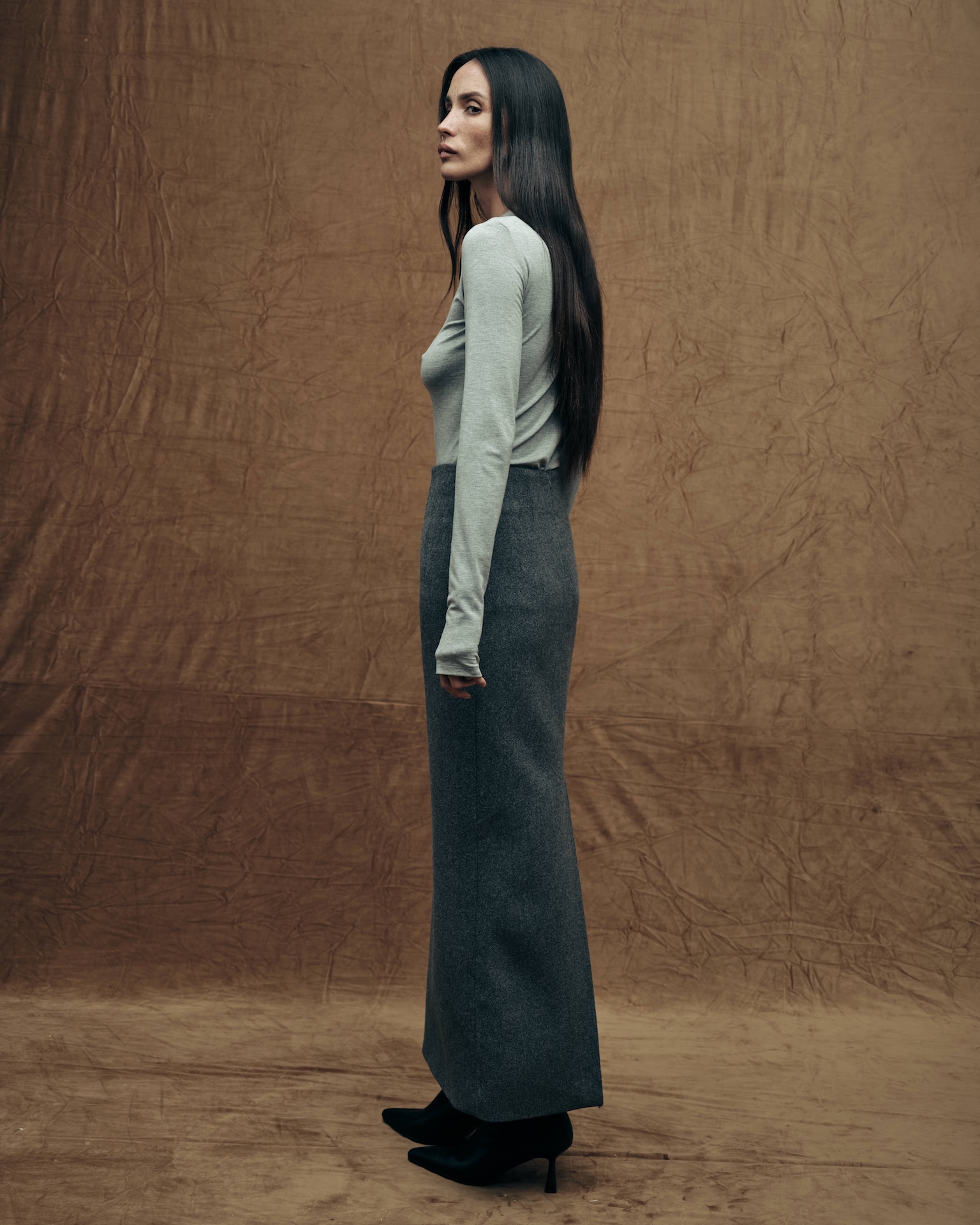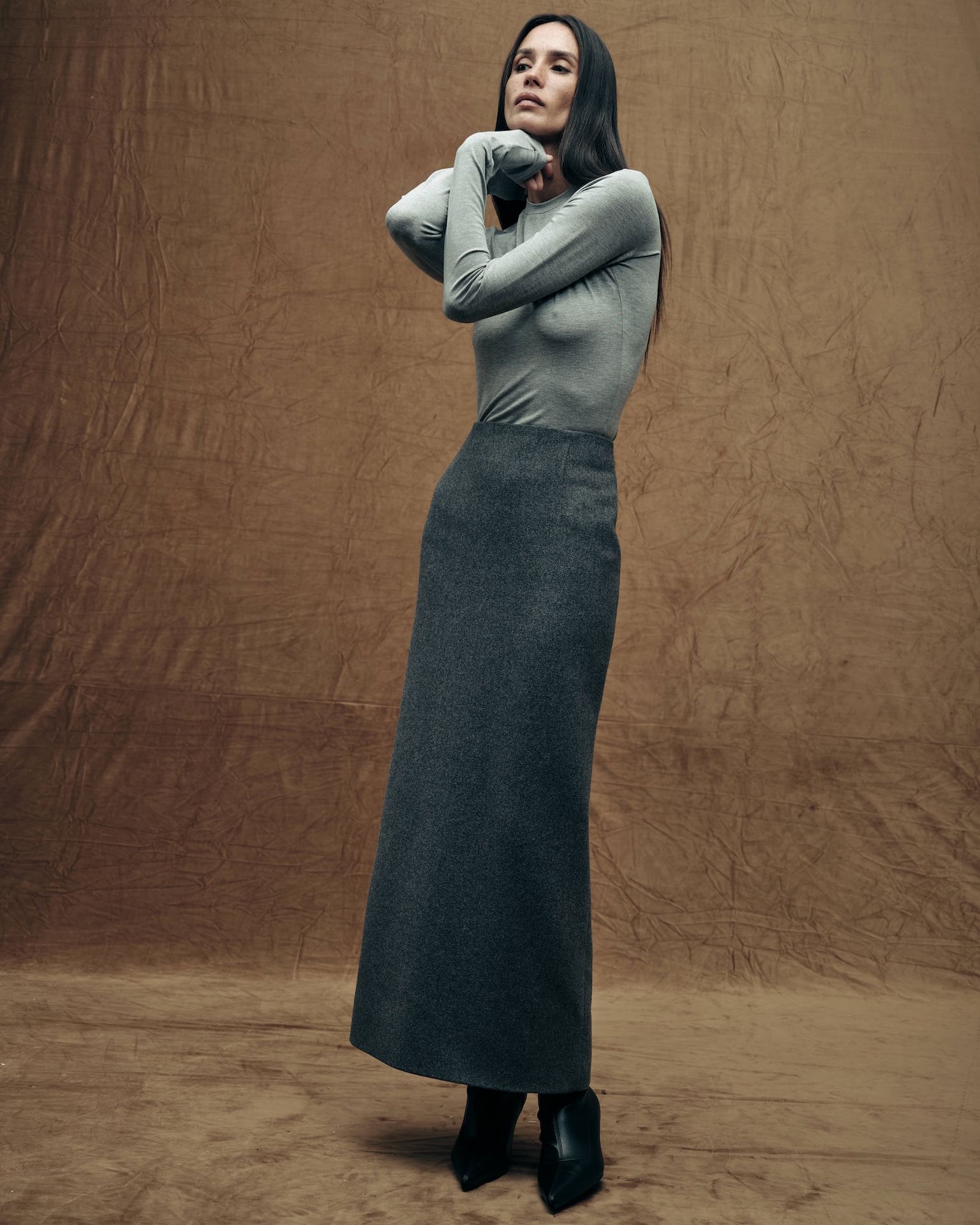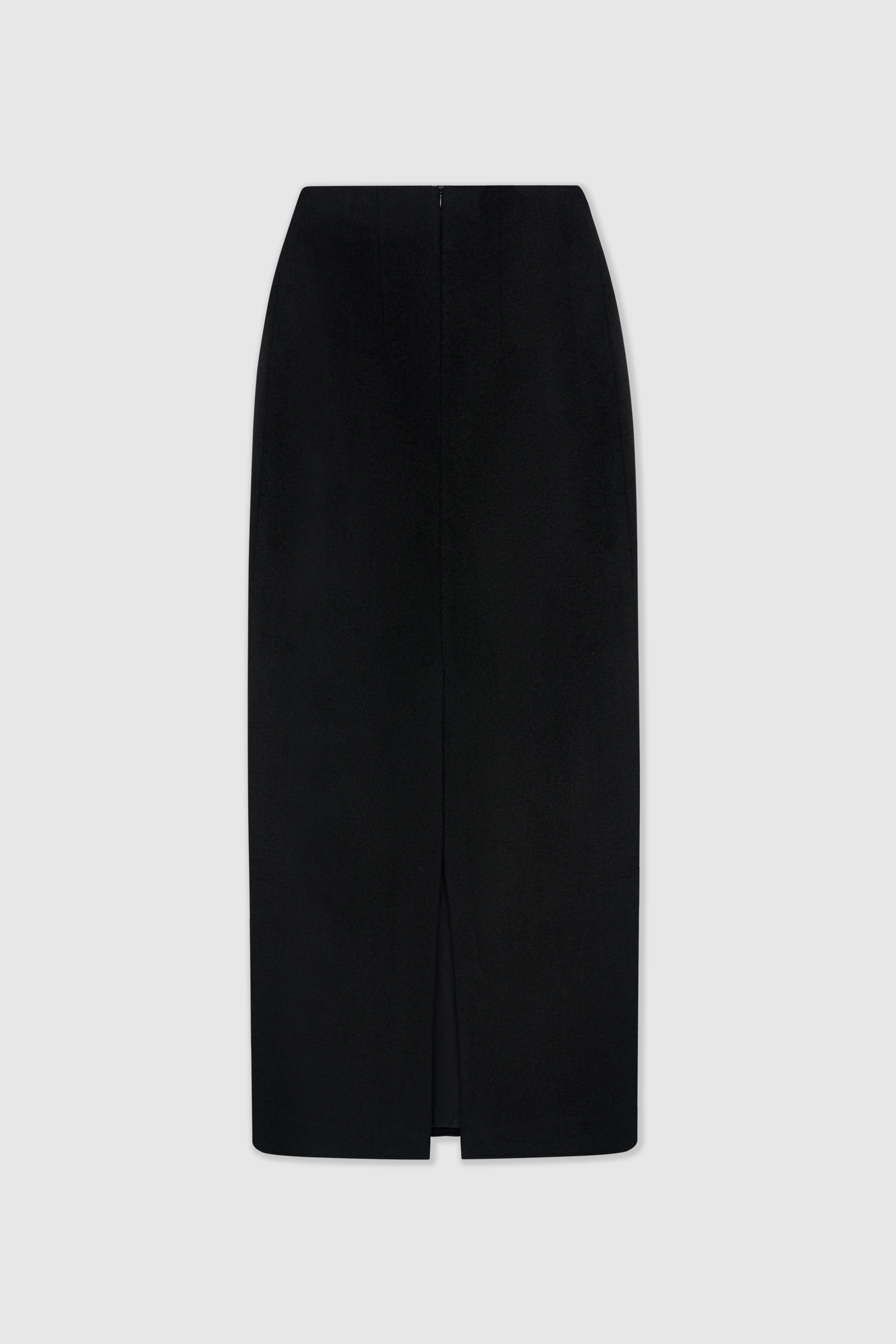 Юбка из благородного шерстяного драпа черного цвета сочетает в себе лаконичность силуэта и безупречное качество. Плотная, формоустойчивая ткань с мягкой текстурой сохраняет тепло и держит форму. Благородный серый цвет легко сочетается с любой палитрой гардероба. Чистые линии и отсутствие пояса создают вытянутый, стройный силуэт. Потайная молния сохраняет лаконичность дизайна, а подклад из шелковистой вискозы обеспечивает комфорт. Длина изделия - 100 см.