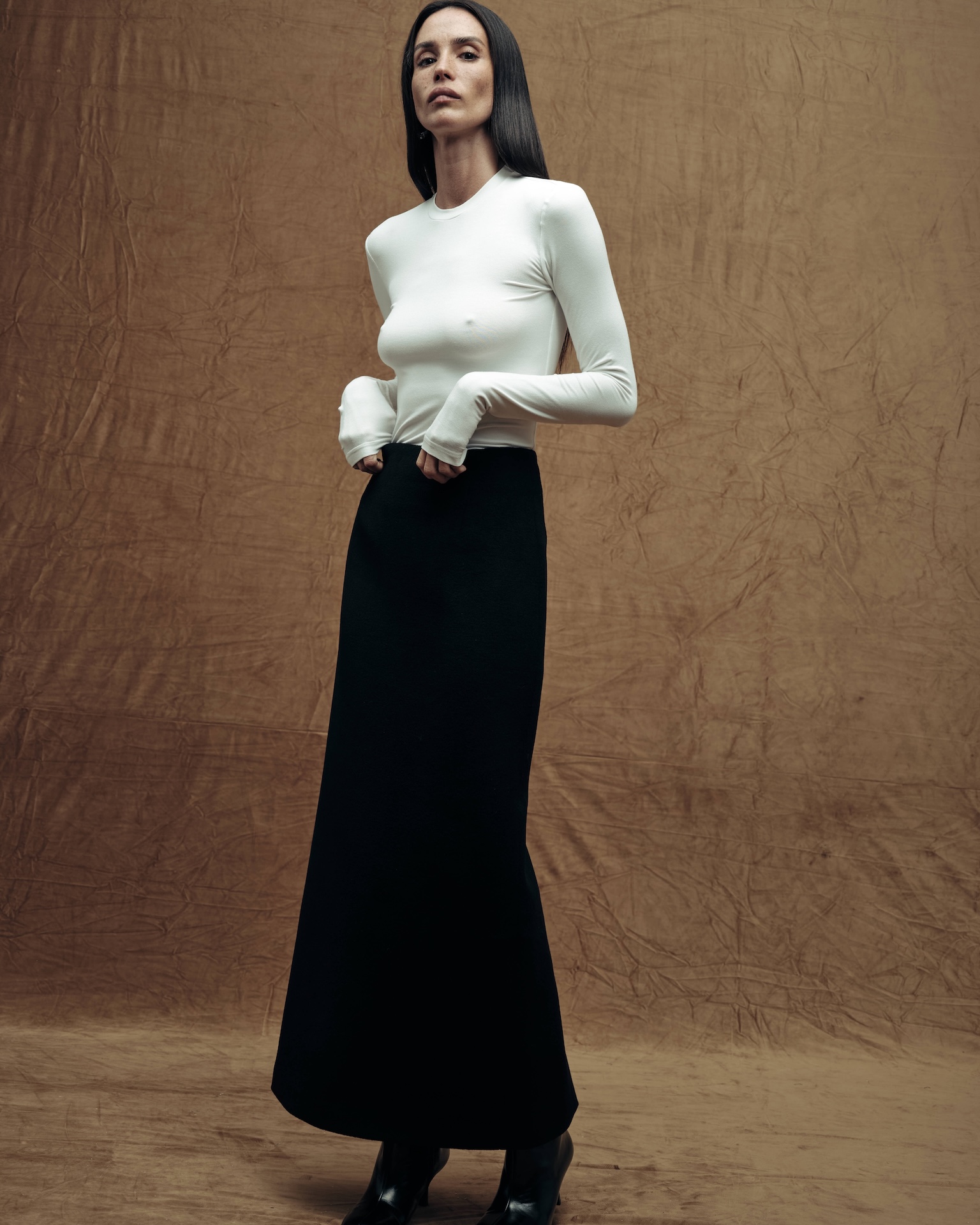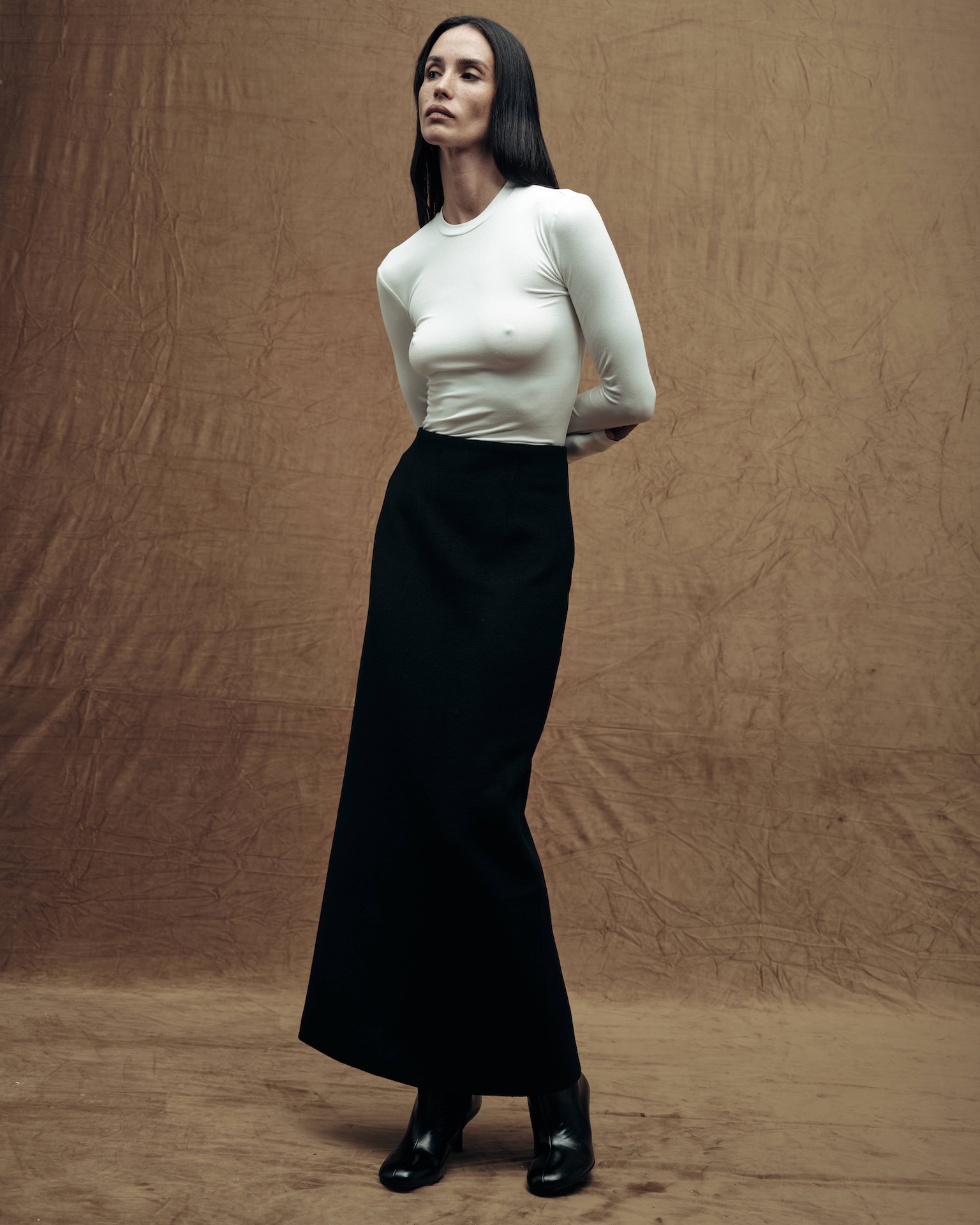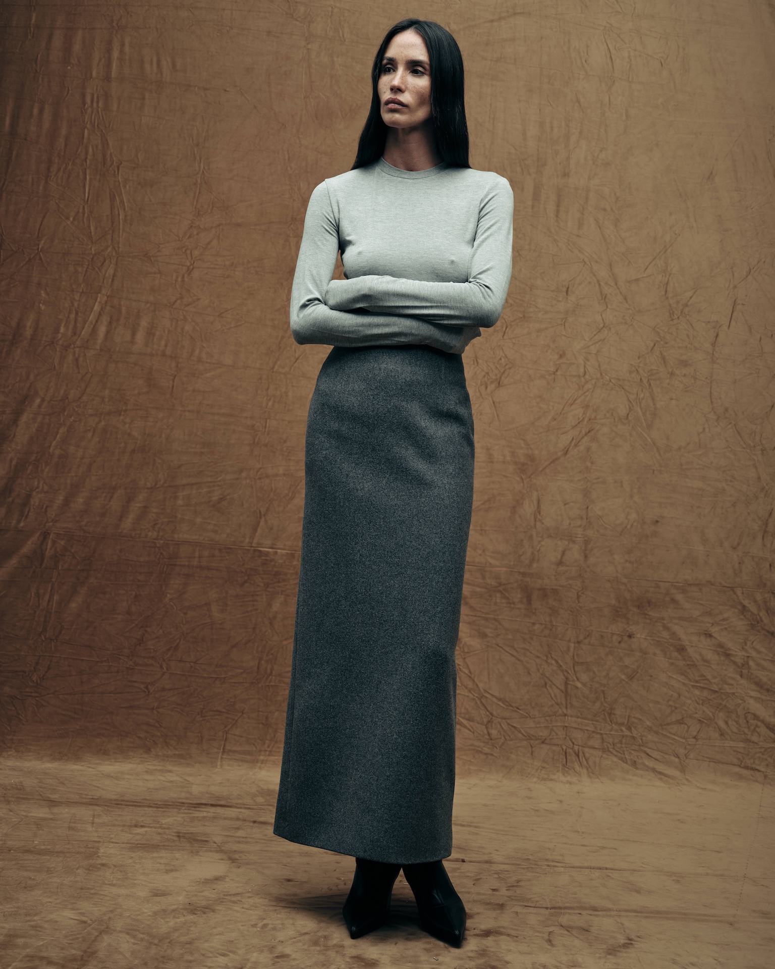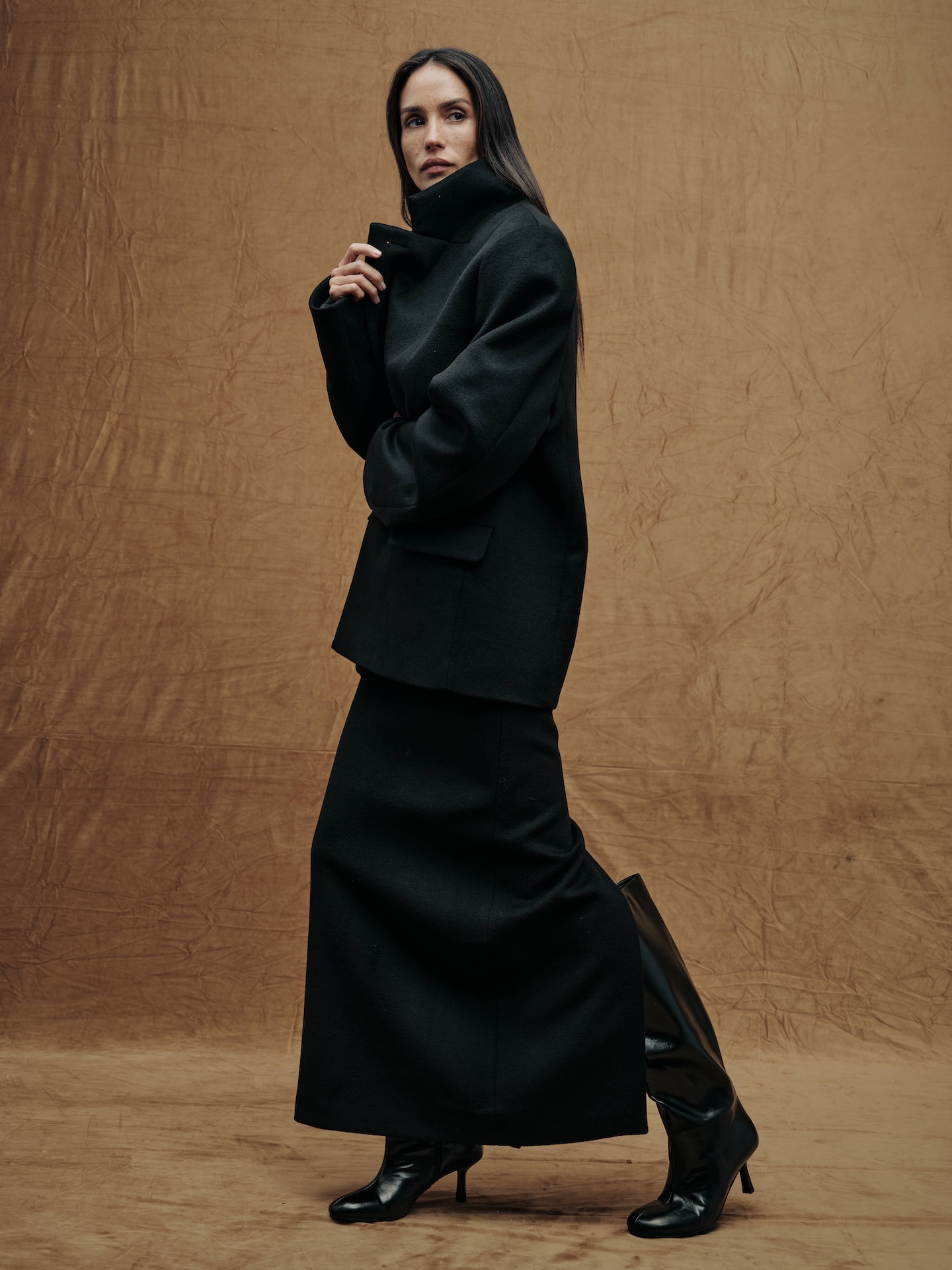Юбка из благородного шерстяного драпа черного цвета сочетает в себе лаконичность силуэта и безупречное качество. Плотная, формоустойчивая ткань с мягкой текстурой сохраняет тепло и держит форму. Благородный серый цвет легко сочетается с любой палитрой гардероба. Чистые линии и отсутствие пояса создают вытянутый, стройный силуэт. Потайная молния сохраняет лаконичность дизайна, а подклад из шелковистой вискозы обеспечивает комфорт. Длина изделия - 100 см.