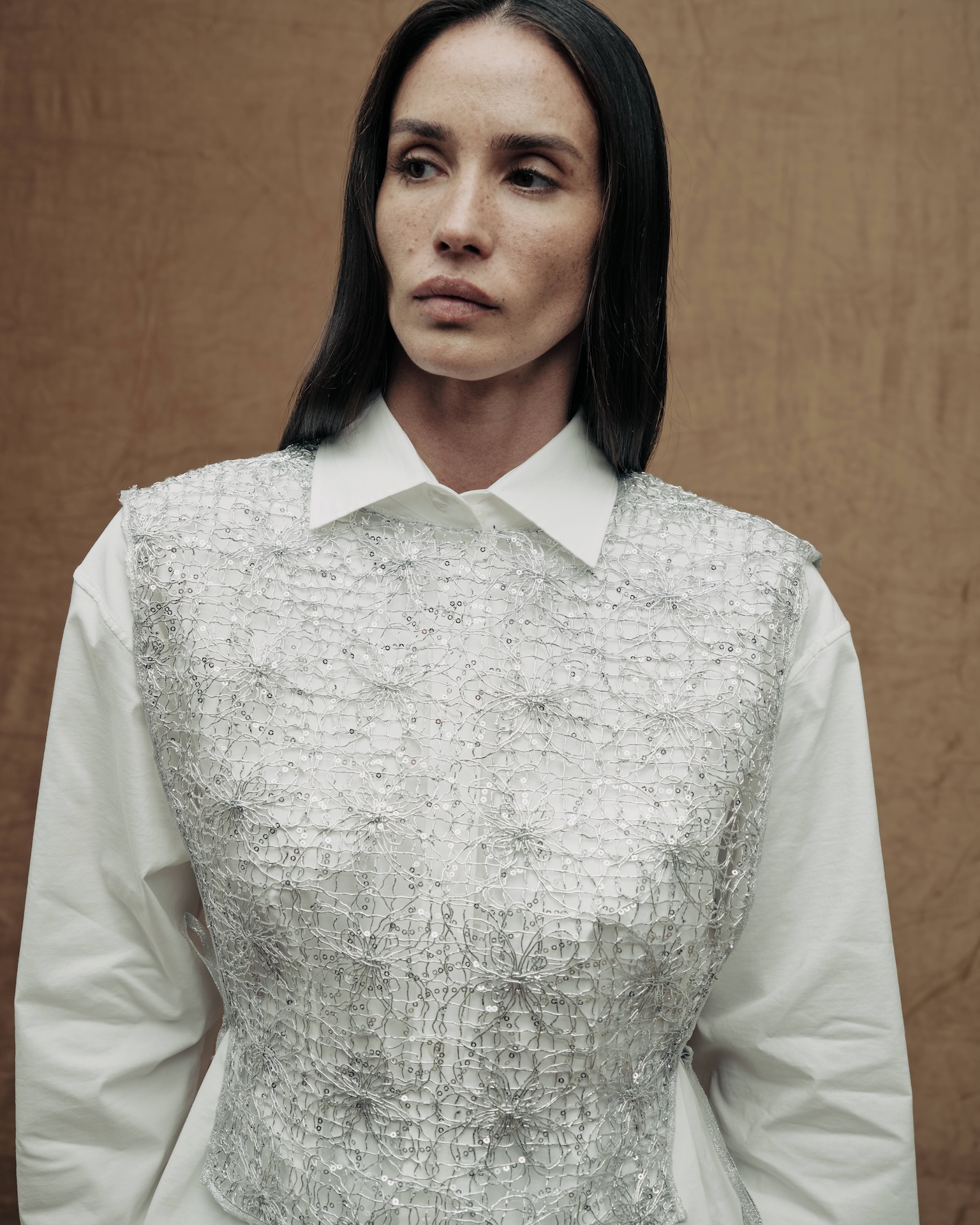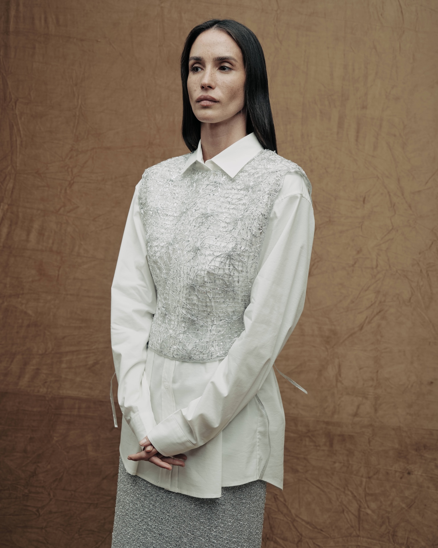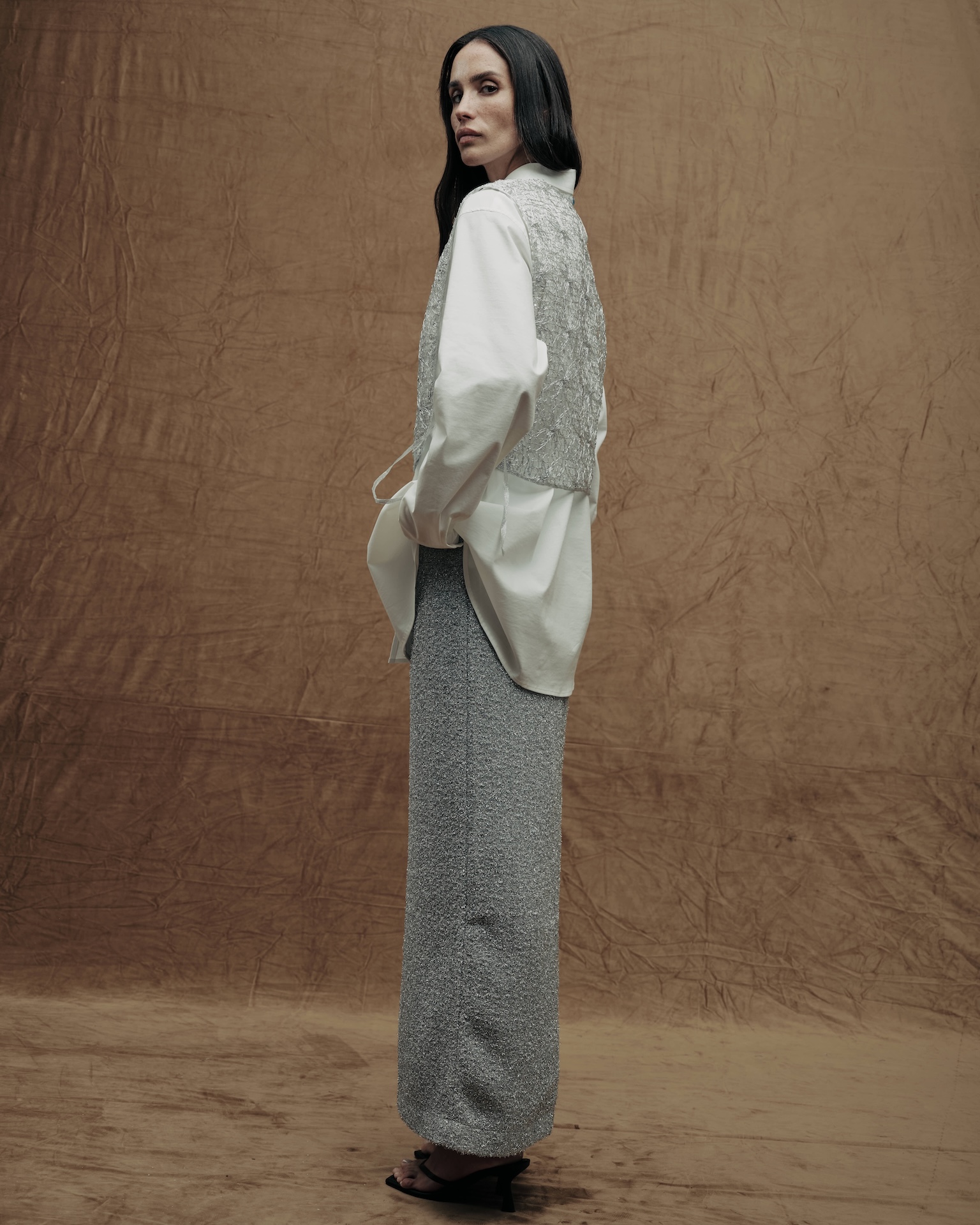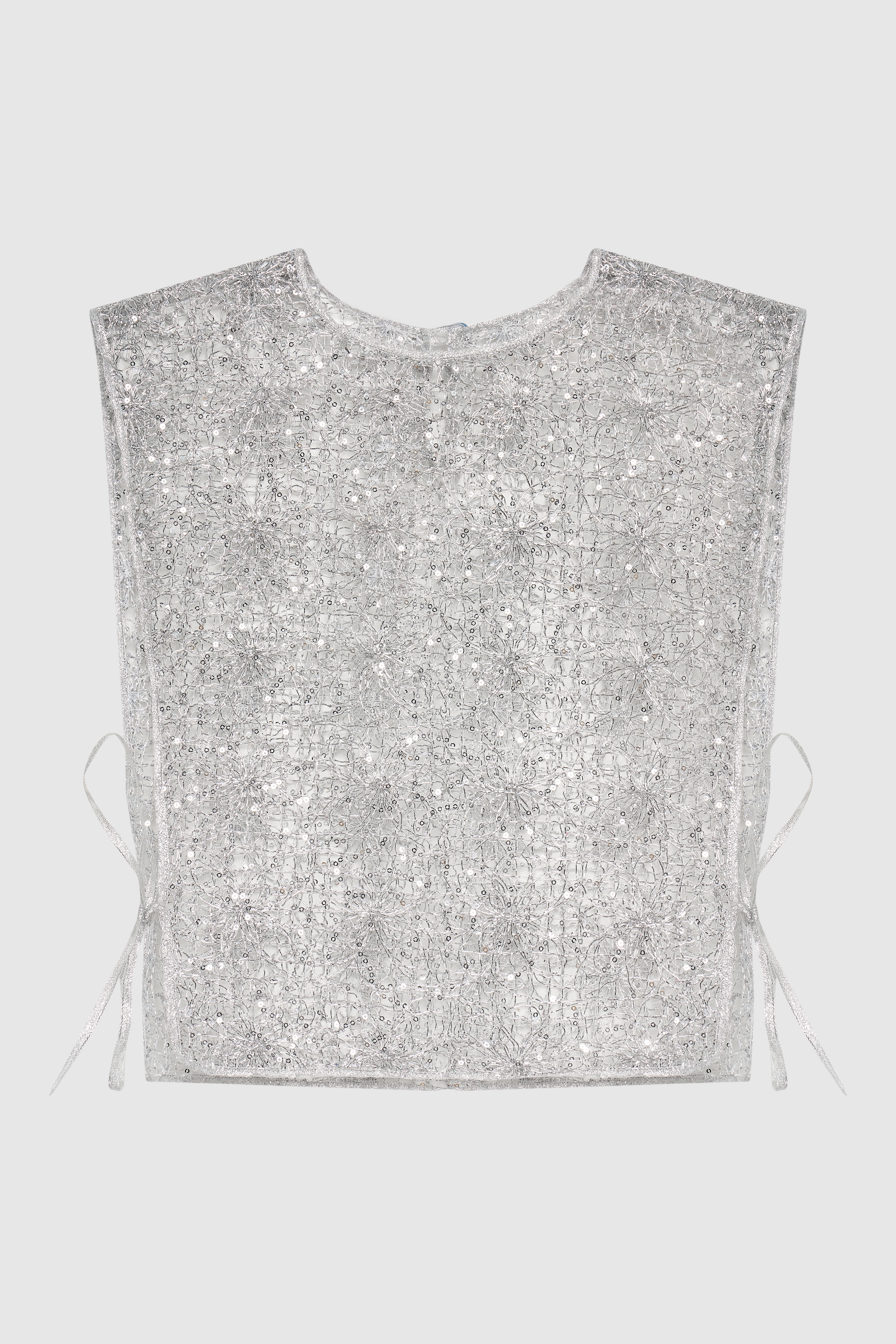 Сияющая манишка из люрекса - элегантный аксессуар, который мгновенно преобразит любой наряд. Идеальное решение для создания праздничного настроения.